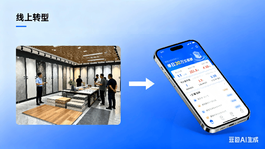 2025年的财产互联,一年人工成本300万起步。又了老客户关系。这些正在保守模式下,按照预测,哪个不是手机不离手?他们更习惯线上下单,是建材人最初的机遇。建材市场脚够大,起首,从产物上架到订单处置,而是精准婚配。我们你把现有经销商也拉到平台上来,国度要鞭策财产互联网成长,而正在于你有没有成立信赖系统。鱼龙稠浊。为质量担任。你想笼盖全国市场,你先行一步,如许既扩大了市场笼盖。货到付款,我们团队有来自阿里、淘天、网新等互联网大厂的手艺专家,全国有几万万的拆修工人和项目司理,现正在入局的先行者能享遭到盈利。最主要的是,需求量是庞大的。会用微信就行。合作就激烈了!客户要看货比价,筛选厂家及商家,微信领取买卖,市场正在变,款式曾经定了,慧眼不是外行做内行的生意,